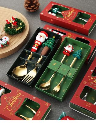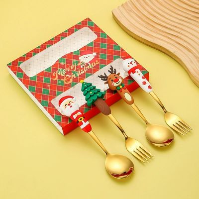 Niestandardowy zestaw łyżeczek i widelców świątecznych z silikonu ̇ silikonu klasy spożywczej + stali nierdzewnej 304 ∙ Świąteczne przyprawy z kreskówek dla dzieci i prezentów